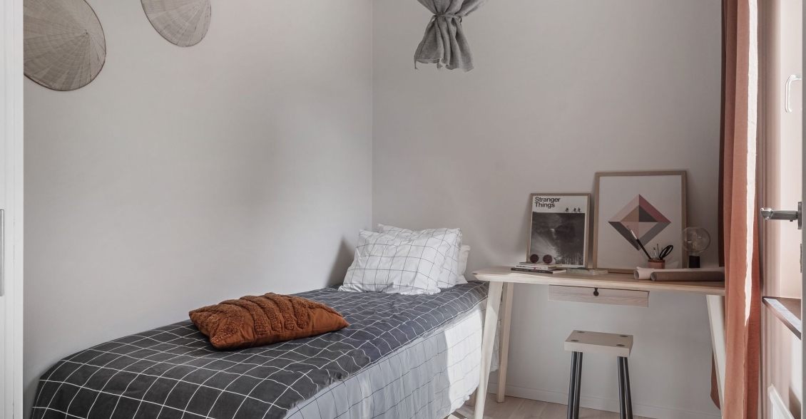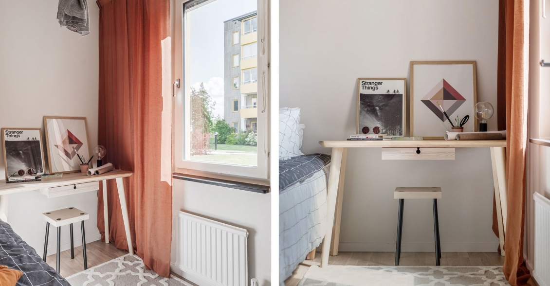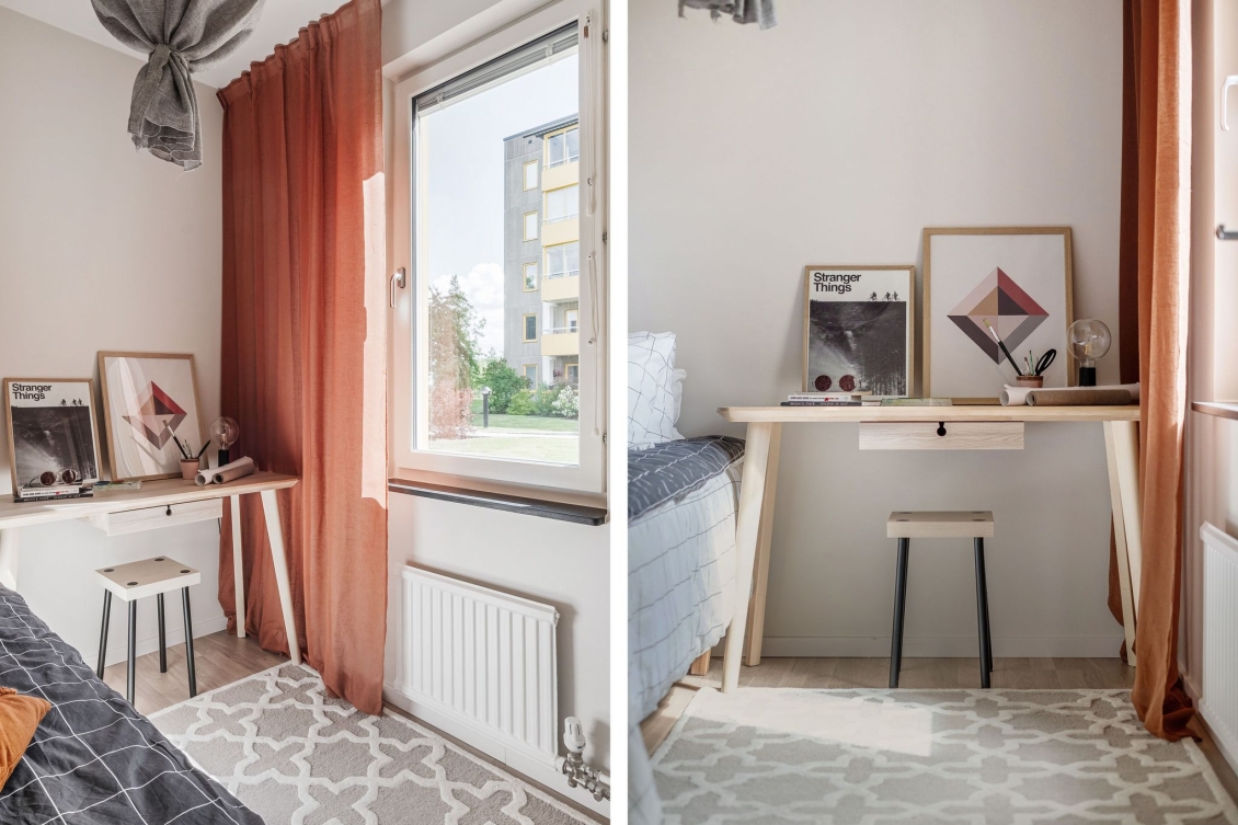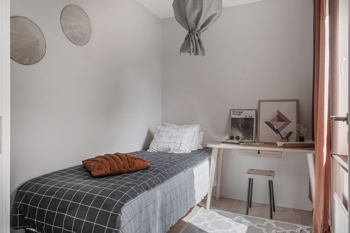 Ytterligare ett rofyllt sovrum som idag möbleras med både säng och skrivbord.