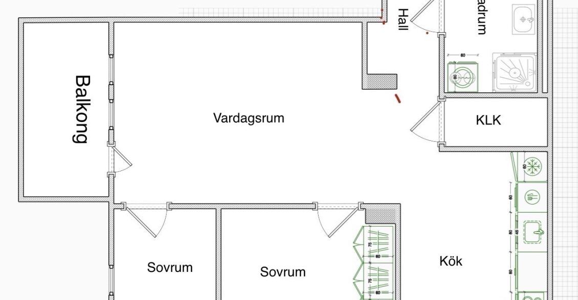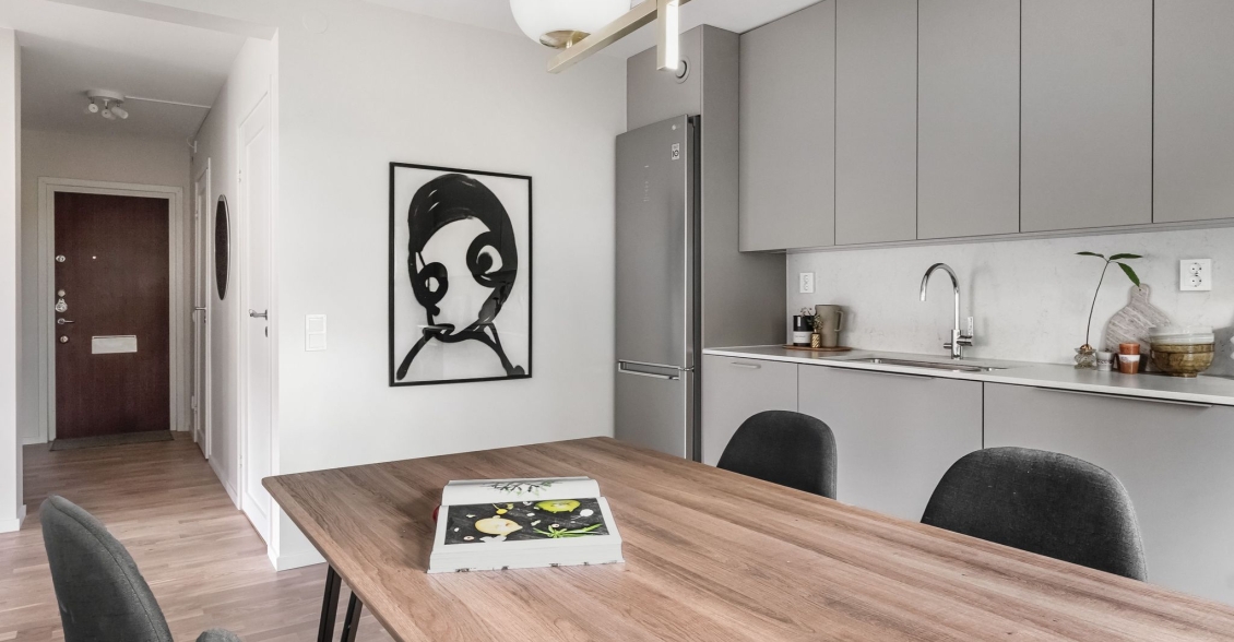 Mot kök och vardagsrum