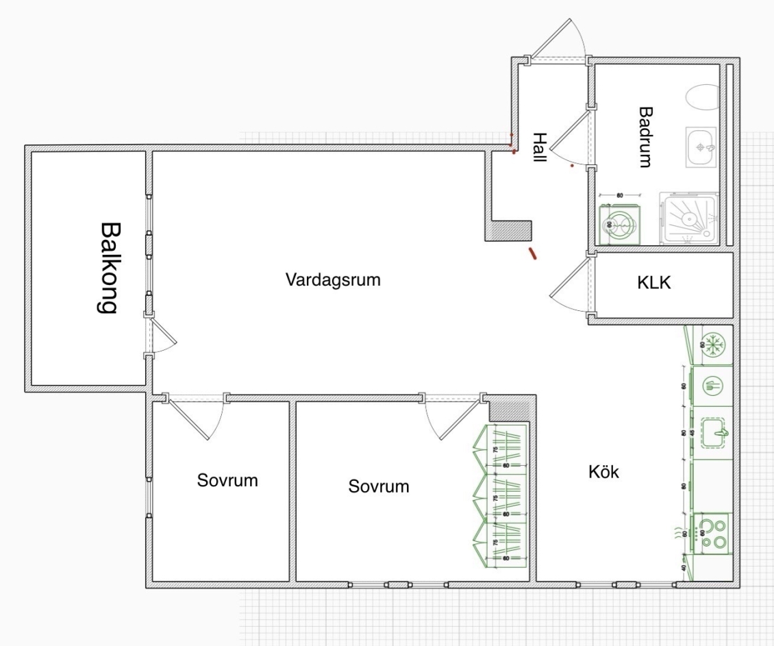 Samtliga areauppgifter är hämtade från bostadsrättsföreningen eller baserade på säljarens information. Dessa uppgifter kan av olika anledningar vara fel. Den köpare som tycker att arean har betydelse för köpet bör därför vidta en uppmätning.