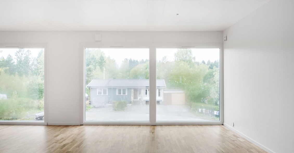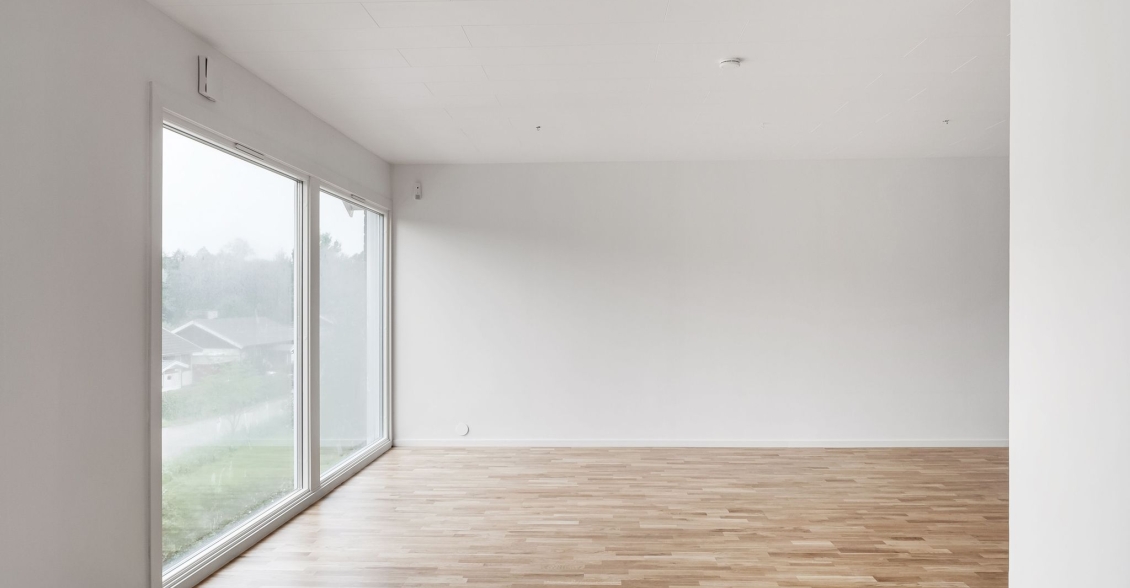 Hall Välkomnande hall som mynnar ut till alla utrymmen på våningsplanet; Vardagsrum och kök i öppen planlösning samt tre sovrum.