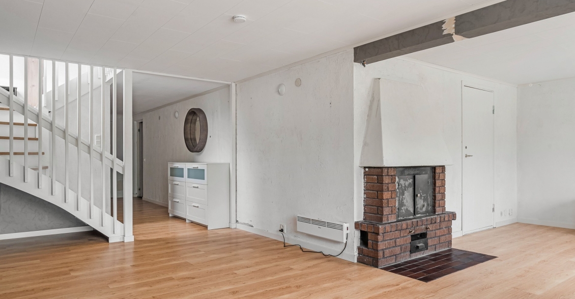 Längst ner på barnvänlig återvändsgata ligger denna soliga villa med stort altandäck i söder. En bostad som är i behov av ytskiktsrenovering men nyligen gemgått stora renoveringar så som nytt yttertak, ny fasad, nya fönster och ny dränering. Det som kvarstår är således den invändiga renoveringen av ytskikten.
