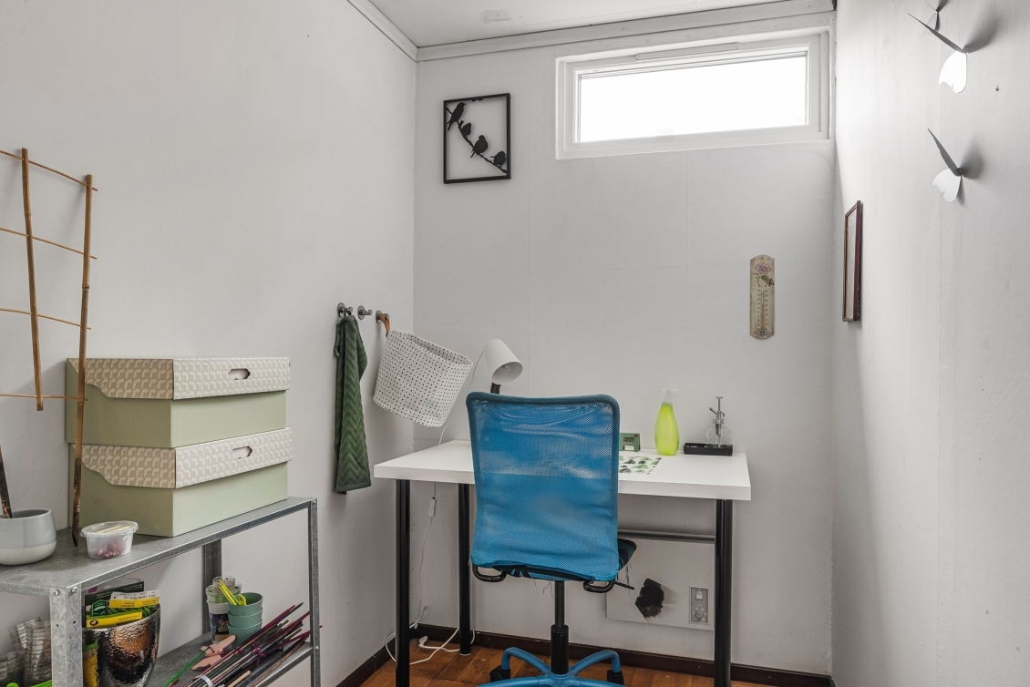 Tvättstuga Tvättmaskin. Här finns plats för klädvård och förvaring