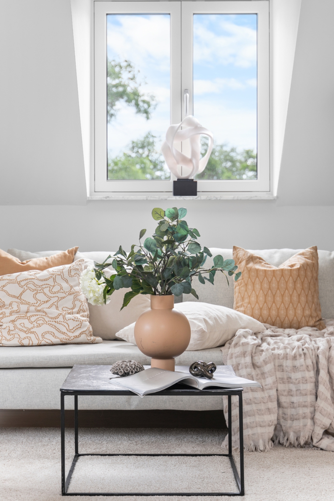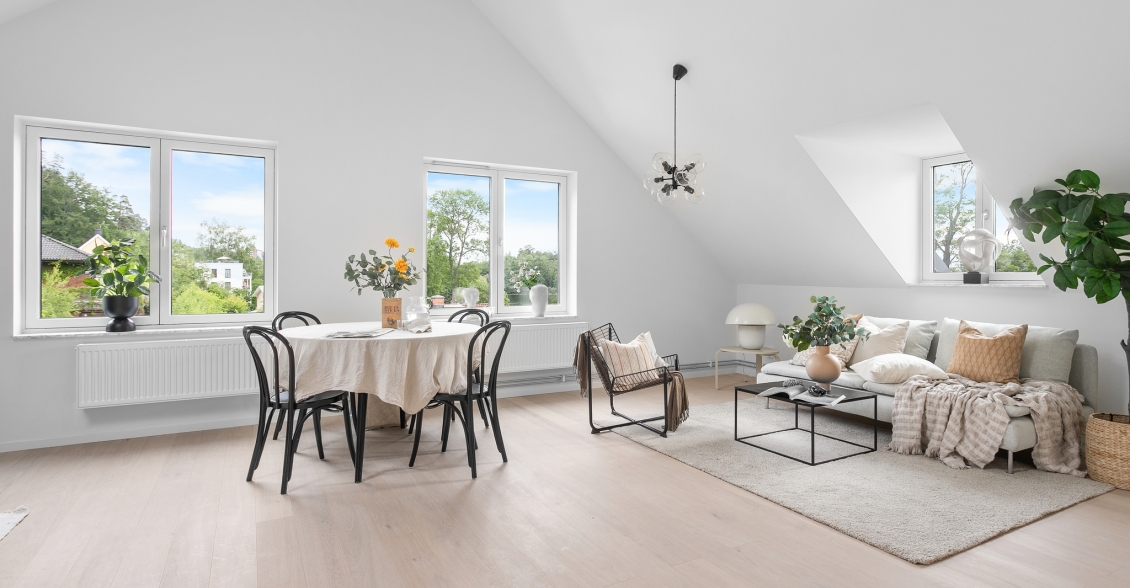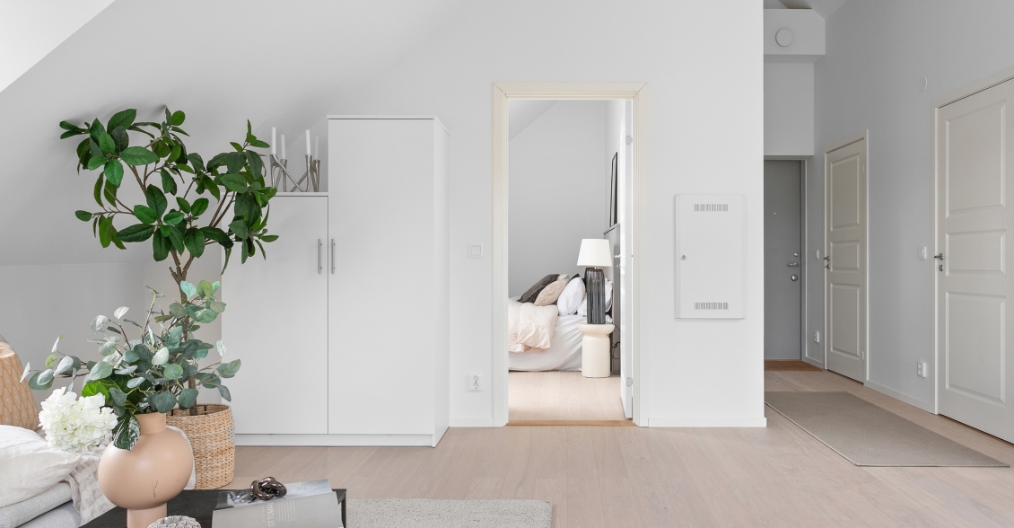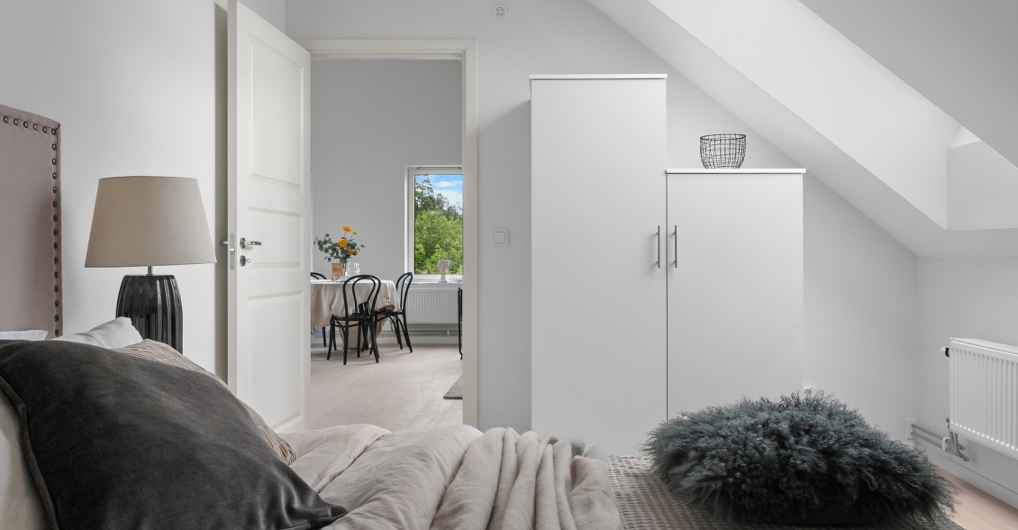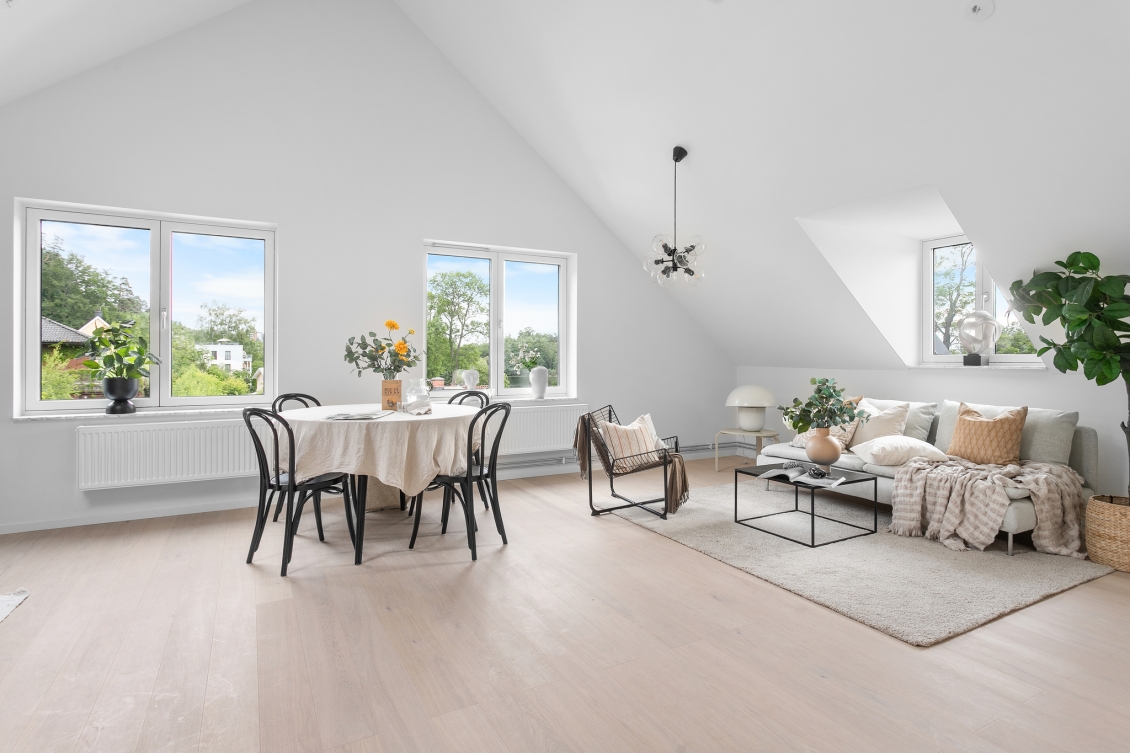 Bli först att flytta in i denna påkostade och välplanerade och helt insynsskyddade vindsvåning om två rum och kök. Vacker sjöutsikt mot Mälaren. Genomgående. Smakfullt och stilrent så som genomgående vitpigmenterat enstavigt ekgolv och vitmålade väggar. Vitvaror från Siemens.