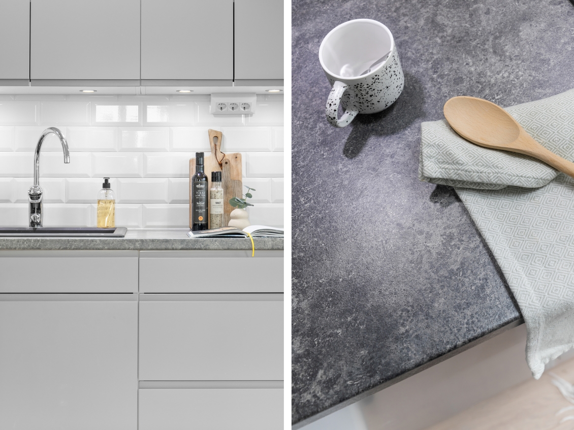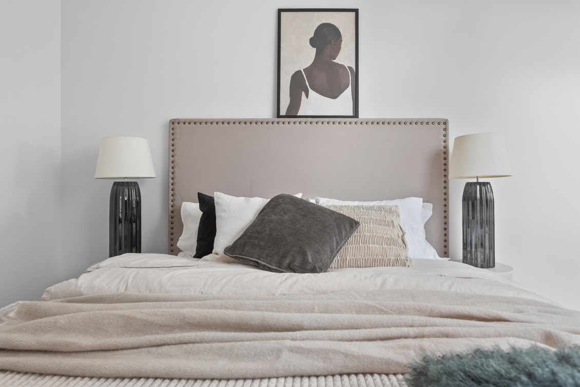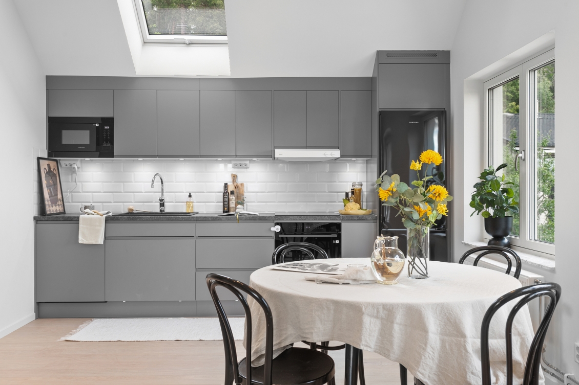 Samtliga bilder i annonsen är från en visningslägenhet i samma brf. Lägenheten på bilderna har samma planlösning fast den är spegelvänd- Bilderna avviker därför från denna lägenhet som har en spegelvänd planlösning och läge i föreningen. Materialval och färgsättning är dock den samma i lägenheterma.