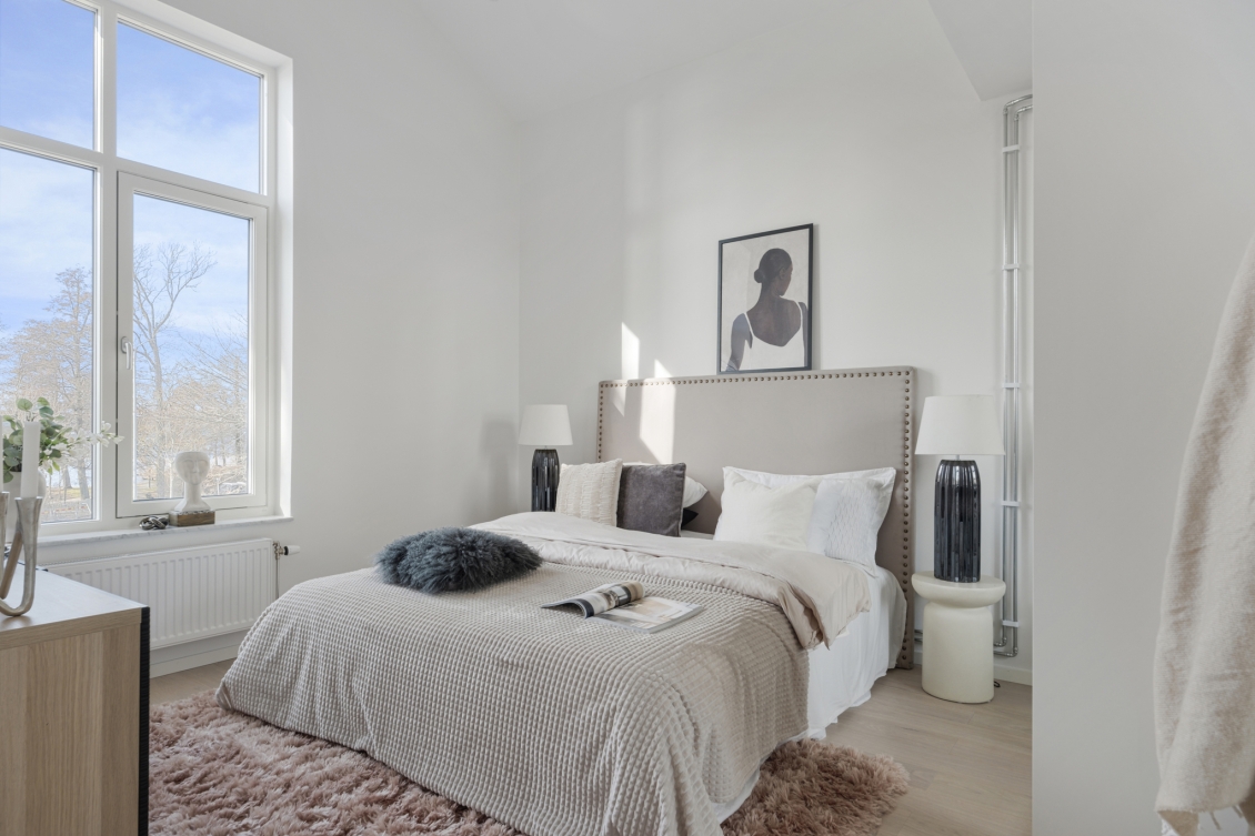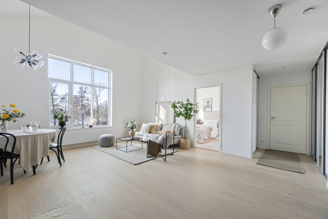 Bli först att flytta in i denna påkostade och välplanerade tvåa om två rum och kök. Vacker sjöutsikt mot Mälaren. Genomgående. Smakfullt och stilrent så som genomgående vitpigmenterat enstavigt ekgolv och vitmålade väggar. Vitvaror från Siemens.