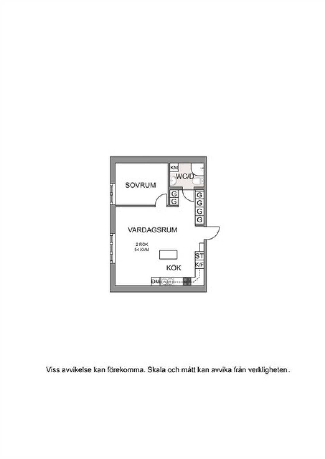 Samtliga areauppgifter är hämtade från bostadsrättsföreningen eller baserade på säljarens information. Dessa uppgifter kan av olika anledningar vara fel. Den köpare som tycker att arean har betydelse för köpet bör därför vidta en uppmätning.