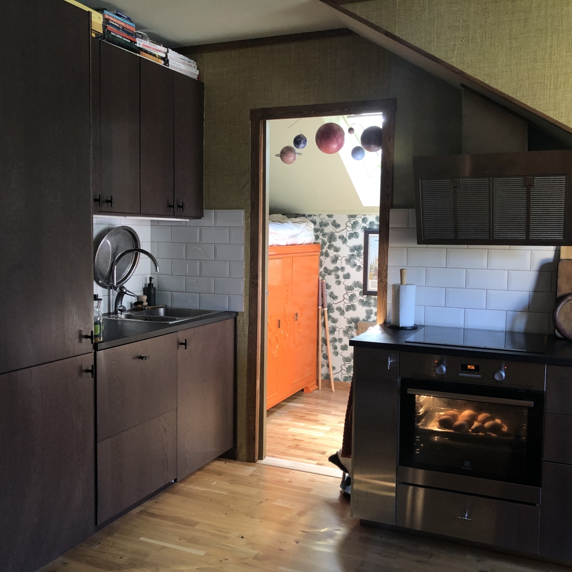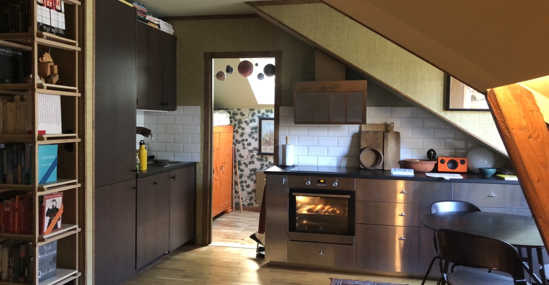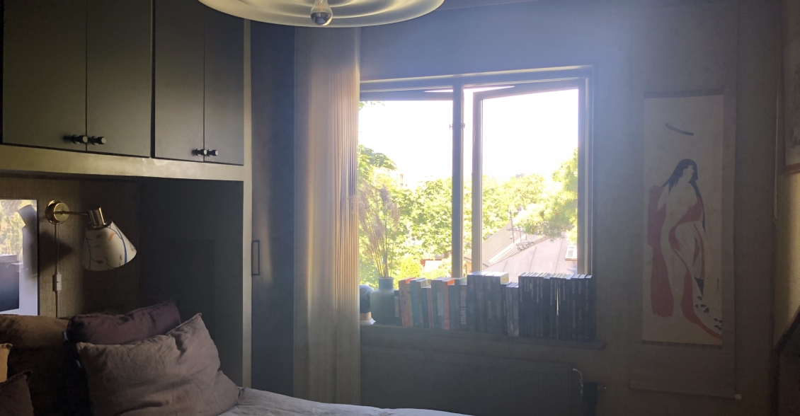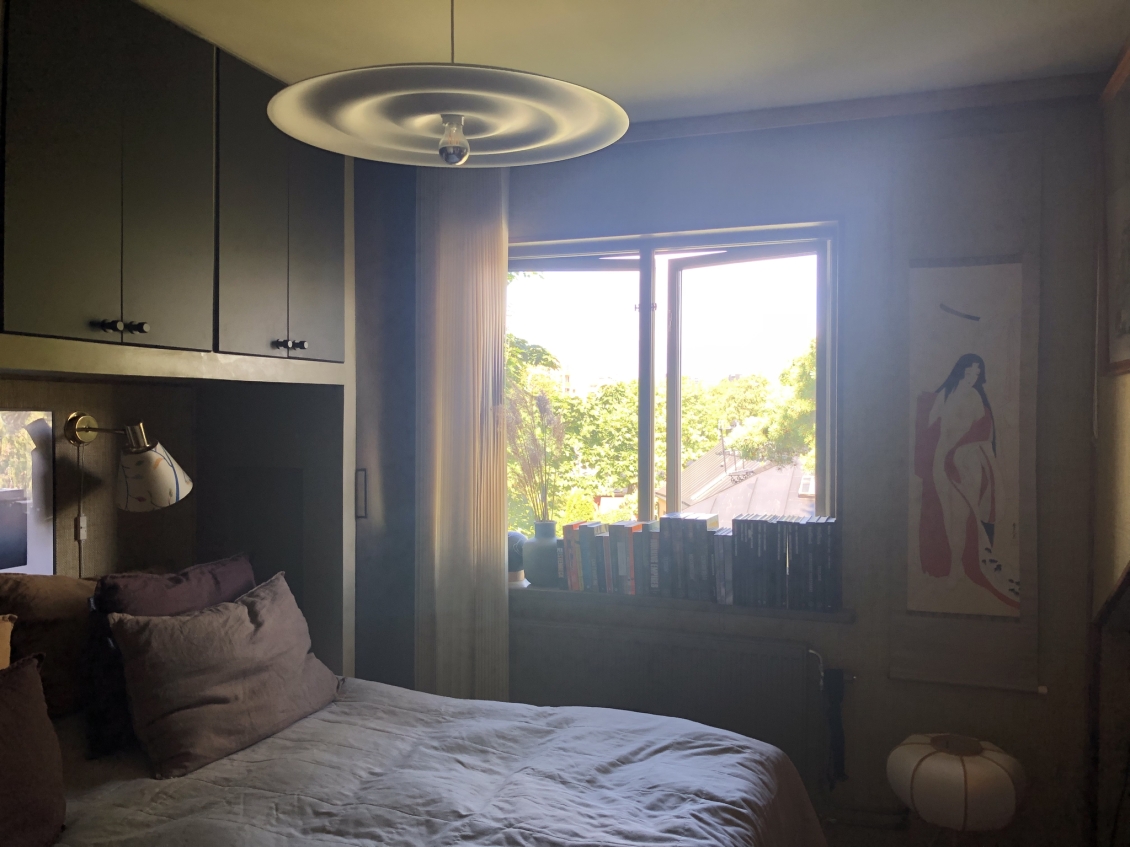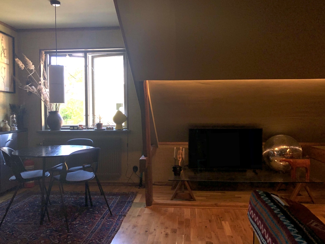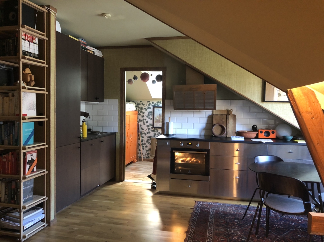 Newly renovated 3 room apartment in charming Råsunda, Solna. Elegantly furnished in Japanese/scandinavian contemporary style. Top floor, unobstructed views and less insight. Charming wooden beams and details. Built in 1930. Newly renovated bathroom with washer, dryer, floor heating and rain shower. Newly renovated kitchen with dishwasher, stove and modern appliances. Studio layout between kitchen and living room. One children's/guest/office room and one master bedroom with additional office space. Plenty off storage. Close to bus, train, tram and metro as well as parks and Mall of Scandinavia. Electricity, heat, broadband, parking and TV included in the rent.